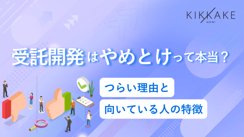そこで今回は「受託開発がやめとけ、つらいと言われる理由」を紹介します。転職するにあたって知っておきたい「向いている人/いない人の特徴」や「受託開発からのキャリア」も解説していますので、ぜひ参考にしてください。