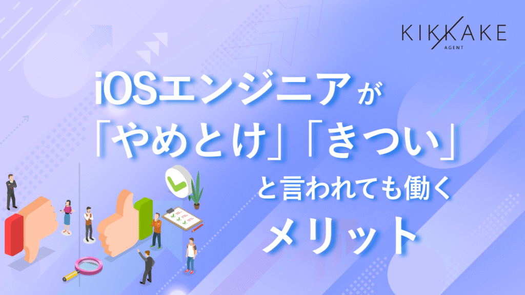 そこで今回は「iOSエンジニアがやめとけと言われても働くメリット」について解説します。「やめとけと言われる理由」や「きついと感じない人の特徴」も紹介していますので、ぜひ参考にしてください。