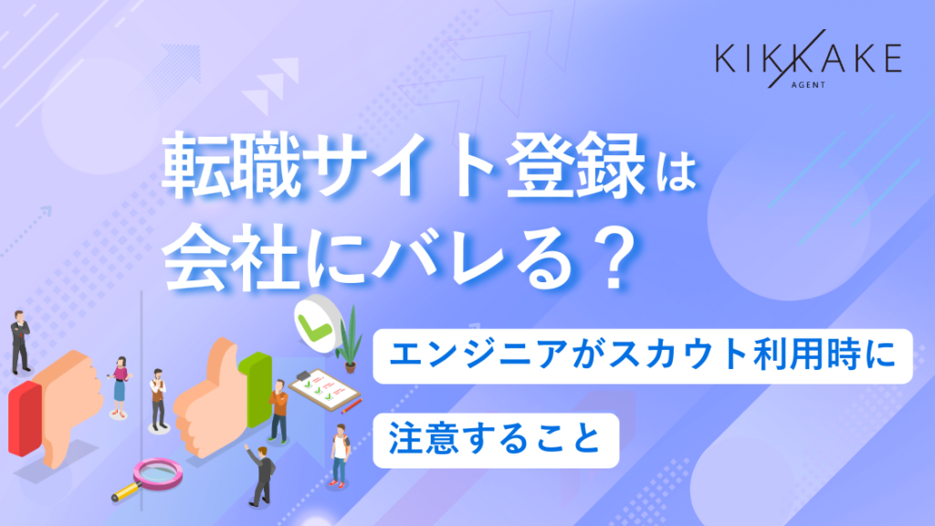 そのため、「自社はブロックしたつもりだが、実は関連企業から閲覧されていた」などのケースが起こり得ます。SESやSIerでは、商流の複雑さが身バレリスクを構造的に高めています。スカウト型においてはリスクゼロで使う方法が存在しないため、本当にバレたくない場合はエージェント型が最適です。キッカケエージェントも秘匿性を確保したまま転職活動が可能なので、身バレのリスクを最小限に抑えられます。