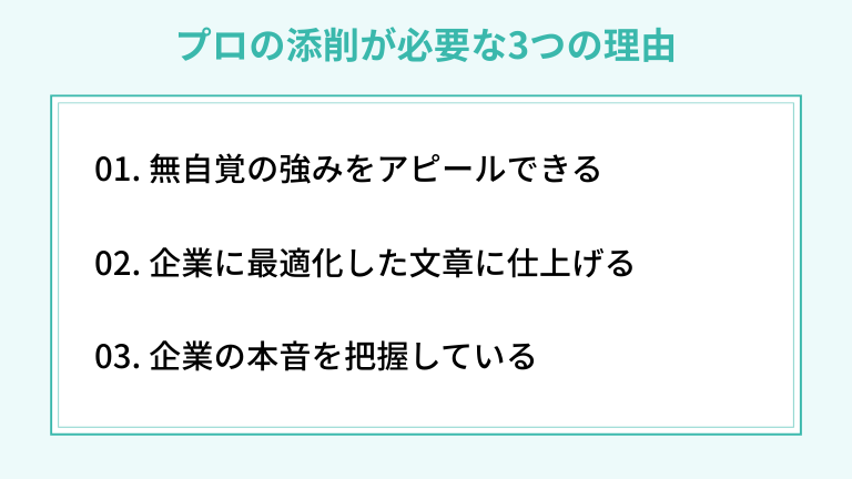 複数のエージェントを併用して比較すると、「この人の言い換え方は採用担当にも刺さりそうだ」「この構成は読み手の負担が少ない」などの気づきが増えます。その結果、自分にとって最適な添削スタイルを見極められるようになり、書類全体の質も底上げされる可能性があります。