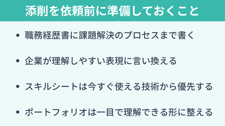 読み手の前提知識に合わせた表現に整えることで、書類の伝達力が上がります。また、理解しやすい表現への調整は、担当者が添削しやすくなるだけでなく、応募企業の採用担当や現場エンジニアにも誤解なく届く職務経歴書になります。